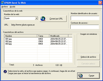 Si selecciona Escanear a Web, también podrá escanear imágenes y cargarlas en la página Web para compartir fotografías de EPSON de forma rápida y simple.