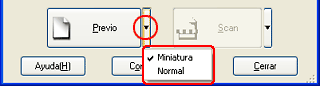 Puede seleccionar el método de previsualización: de miniaturas o normal. Haga clic en la flechita situada a la derecha del botón Previo y seleccione Miniatura o Normal.
