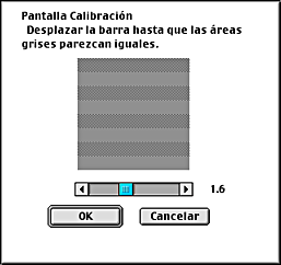 Observe la pantalla y desplace el control deslizante hacia la derecha o la izquierda hasta que las dos tonalidades de las bandas grises horizontales coincidan.
