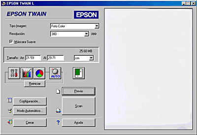Antes de escanear y guardar una imagen, puede acceder a una vista preliminar en la ventana de previsualización, situada en el lado derecho de la ventana del modo Manual. Utilice la función de previsualización para comprobar los resultados de los ajustes elegidos.