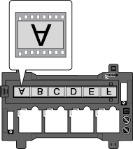 Coloque un máximo de cuatro diapositivas en el soporte para películas, con el lado de base brillante boca abajo. Las imágenes deben aparecer hacia atrás en la cara que está hacia arriba. Las imágenes deberían tener la orientación aquí mostrada.