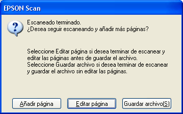Cuando haya terminado de seleccionar los ajustes de archivos, haga clic en Aceptar. Epson Scan escaneará la página y mostrará esta ventana.