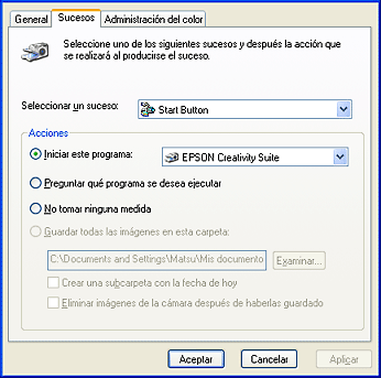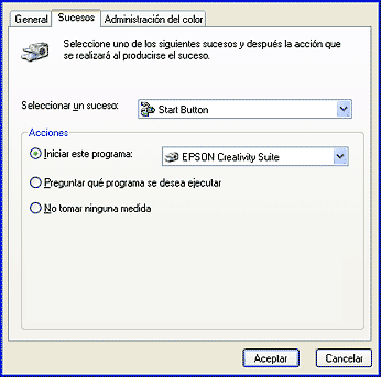 Puede asignar los botones del escáner a otro programa de Windows compatible con sucesos de escáner (Photoshop Elements, por ejemplo). Si tiene un programa compatible, aparecerá en la ventana de selección.