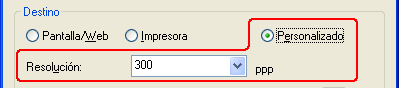 Personalizado si desea seleccionar una resolución especial para otras finalidades.