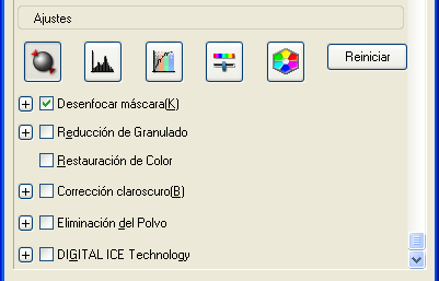 Ajuste del color y otros ajustes de la imagenDespués de previsualizar sus imágenes y ajustar el área de escaneado, puede modificar la calidad de la imagen. Epson Scan ofrece todo tipo de ajustes para mejorar el color, la definición, el contraste y otros aspectos que afectan a la calidad de la imagen.