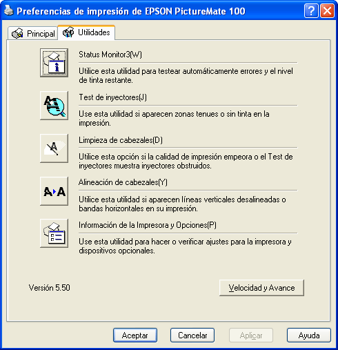 Las utilidades de la impresora Epson permiten comprobar el estado actual de la impresora y realizar operaciones de mantenimiento desde el ordenador.