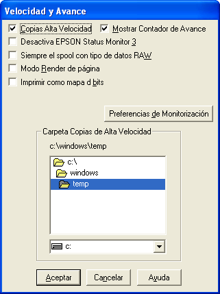 Seleccione esta casilla de verificacin para inhabilitar la supervisin del estado de la impresora con EPSON Status Monitor 3.