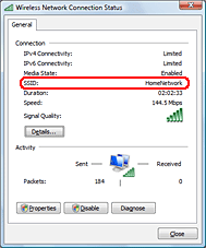 El SSID es el nombre seleccionado en Network Name (Nombre de red).