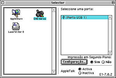 Haga clic en OK. En la lista de puertos del Selector, ahora figura el nombre de la impresora compartida.