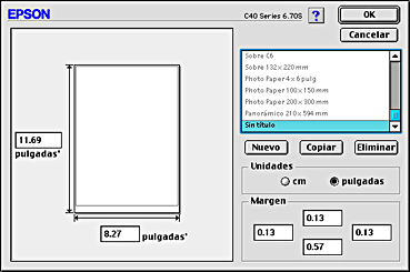 Seleccione el tamaño del papel que desee utilizar. Si desea definir un tamaño de papel personalizado, consulte Definir un tamaño de papel personalizado. |