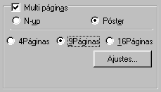 Si está seleccionada la casilla de verificación Multi páginas, puede elegir entre dos ajustes: N-up y Póster. Consulte la sección correspondiente más abajo.