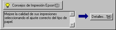 En el cuadro de texto situado en la parte inferior de la ventana del Contador de avance, aparecen sugerencias para aprovechar al máximo el software de la impresora EPSON. Cada 30 segundos se muestra un consejo nuevo. Si desea saber más detalles sobre la sugerencia que aparezca en pantalla, haga clic en el botón Detalles.