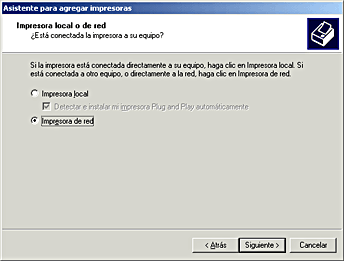 Seleccione Impresora de red y haga clic en Siguiente.