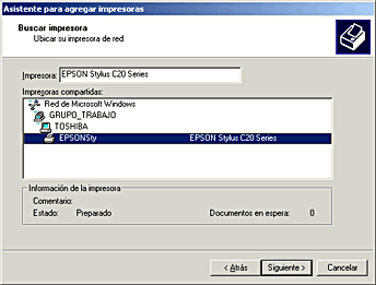 Si desea supervisar el estado de una impresora compartida, tendrá que instalar EPSON Status Monitor 3 en cada uno de los ordenadores que vayan a acceder a la impresora. Consulte las instrucciones en Instalar EPSON Status Monitor 3.