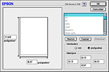 Seleccione el tamaño del papel que desee utilizar. Si desea definir un tamaño de papel personalizado, consulte Definir un tamaño de papel personalizado. |