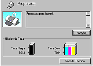 EPSON Status Monitor 3 ofrece información detallada acerca del estado de la impresora, una pantalla gráfica y mensajes de estado. Si queda poca tinta o se agota, aparecerá el botón Cómo en la ventana EPSON Status Monitor 3. Si hace clic en Cómo, aparecerán las instrucciones para sustituir el cartucho de tinta y el cabezal de impresión se desplazará hasta la posición de sustitución del cartucho.