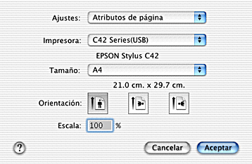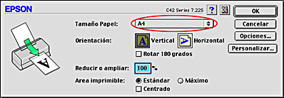 Seleccione A4 como ajuste de Tamaño papel. Después, haga clic en Aceptar para cerrar el cuadro de diálogo.