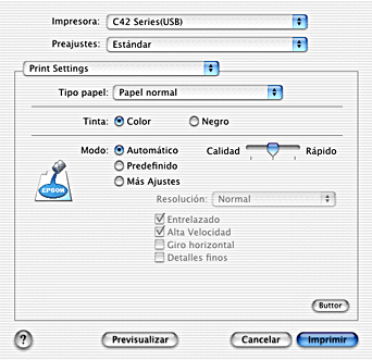 Seleccione Configuración de impresora del menú desplegable en el cuadro de diálogo Imprimir.