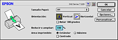 Seleccione el Tamaño papel de los datos de impresión originales en el menú Papel (Windows) o el cuadro de diálogo Ajustar página (Macintosh).