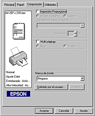 Para Windows, seleccione la marca de fondo deseada de la lista Marca de fondo del menú Composición y haga clic en el botón Configuración.