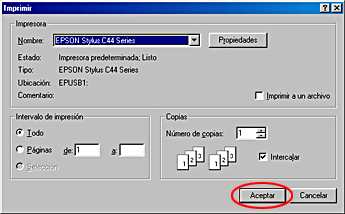 En el cuadro de diálogo que aparece, haga clic en Impresora, Configuración, Opciones o en Propiedades. (Según la aplicación que use, es posible que tenga que hacer clic en una combinación de dichos botones). Aparecerá la ventana del software de la impresora.