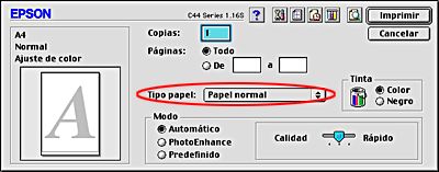 Para seleccionar los ajustes del controlador de la impresora correspondientes al papel normal A4, siga estas instrucciones.