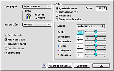 Si está seleccionado el modo Automático , el software de la impresora se ocupará de los ajustes detallados acordes a los ajustes de Tipo papel y Tinta actuales.