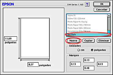 Si el tamaño de papel adecuado no figura en la lista Tamaño Papel del cuadro de diálogo Ajustar página, siga estos pasos para definir un tamaño nuevo de papel personalizado.