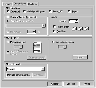 Debajo de Multi páginas, puede elegir entre las opciones Páginas por hoja e Impresión de Póster.