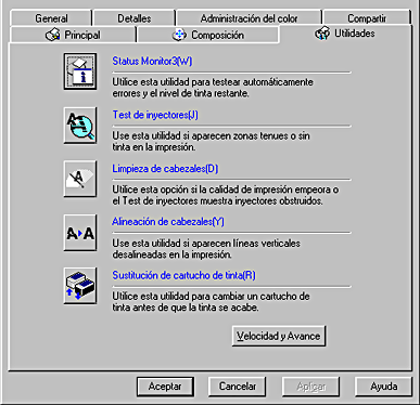 Las utilidades de la impresora EPSON permiten comprobar el estado actual de la impresora y realizar algunas operaciones de mantenimiento desde la pantalla del ordenador.