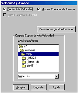 En este cuadro de diálogo, puede definir los ajustes relacionados con la velocidad y el progreso de la impresión.