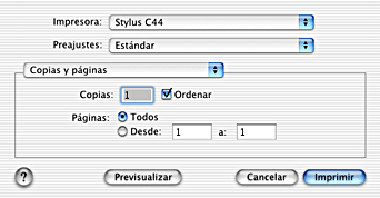 Seleccione Copias y páginas en el menú emergente, y luego elija entre Todos y Desde y a. Si selecciona Desde y a, introduzca la primera página del intervalo de páginas deseado en el cuadro de texto Desde, y la última página en el cuadro de texto a.