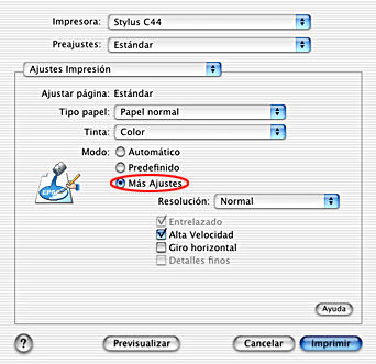 Este modo le permite configurar ajustes de impresión más detallados. Si desea más información, consulte Uso del modo Más Ajustes. |