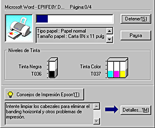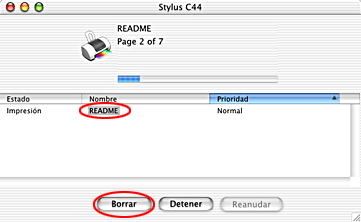 Se puede cancelar la impresión tanto a través del contador de avance como de EPSON Spool Manager. Consulte la sección correspondiente más abajo.