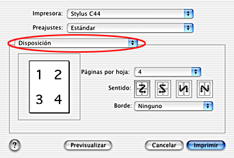 Imprime 2 ó 4 páginas de su documento en una sola hoja de papel.