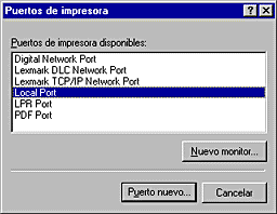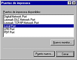 En el cuadro de diálogo Puertos de impresora, haga clic en Cerrar para regresar al menú Puertos.