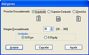 El margen de encuadernación real puede diferir de los ajustes especificados según la aplicación que utilice. Antes de imprimir todo el trabajo, pruebe con algunas hojas para ver los resultados reales.