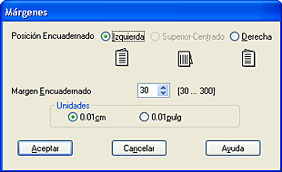 Esta función no está disponible si está seleccionada la casilla de verificación Sin márgenes del menú Principal.