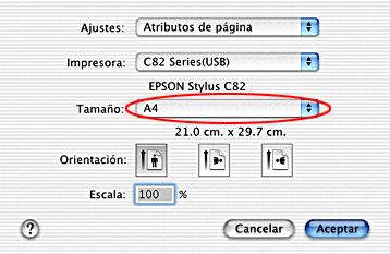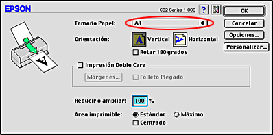 Seleccione A4 en el ajuste Tamaño Papel. Después, haga clic en OK para cerrar el cuadro de diálogo.