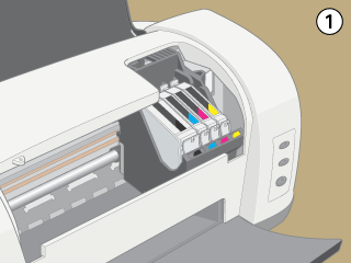 Pulse el botón de la tinta . El cabezal de impresión se moverá y el sistema de suministro de tinta empezará a cargarse. Este proceso tarda alrededor de un minuto.