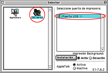 Elija Selector en el menú Apple y haga clic en el icono de su impresora. Seleccione el puerto al que está conectada la impresora.