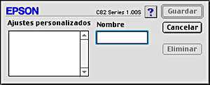 Escriba un nombre exclusivo (de 16 caracteres como máximo) para sus ajustes en el cuadro de texto Nombre y haga clic en Guardar. Los ajustes se añadirán a la lista Ajustes personalizados. Puede guardar hasta 100 ajustes personalizados distintos.