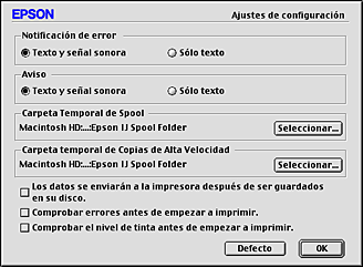 Si desea cambiar la forma en que la utilidad EPSON StatusMonitor supervisa la impresora o la manera en que ésta maneja los trabajos de impresión, siga estos pasos.