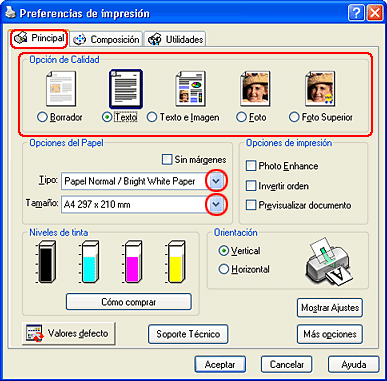 Abra el controlador de la impresora.