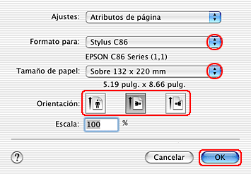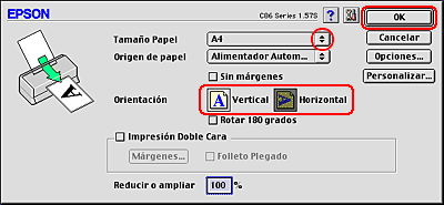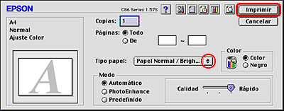 ![]() | Seleccione Stylus C86 como el ajuste de Impresora. |