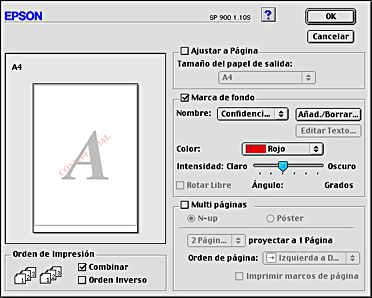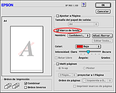 Es posible imprimir una marca de fondo basada en texto o en imágenes en su documento.