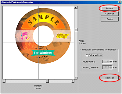 Si reajusta la posición de la impresión, haga clic en Reiniciar.