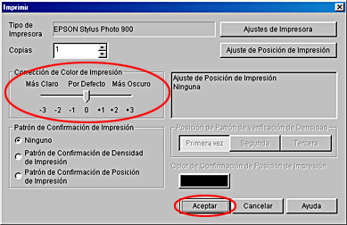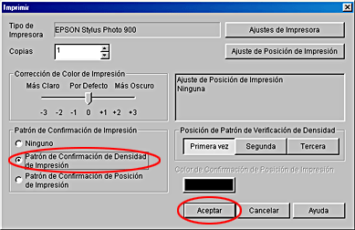 En Patrón confirmación de impresión, seleccione Patrón de confirmación de posición de impresión y haga clic en Aceptar.