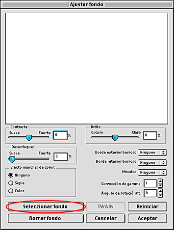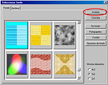 Haga clic en el botón situado a la izquierda de la barra de herramientas de edición. Aparecerá el cuadro de diálogo Seleccionar fondo.