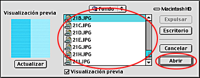 Si no está seleccionada la carpeta Fondo, selecciónela y haga clic en Abrir.